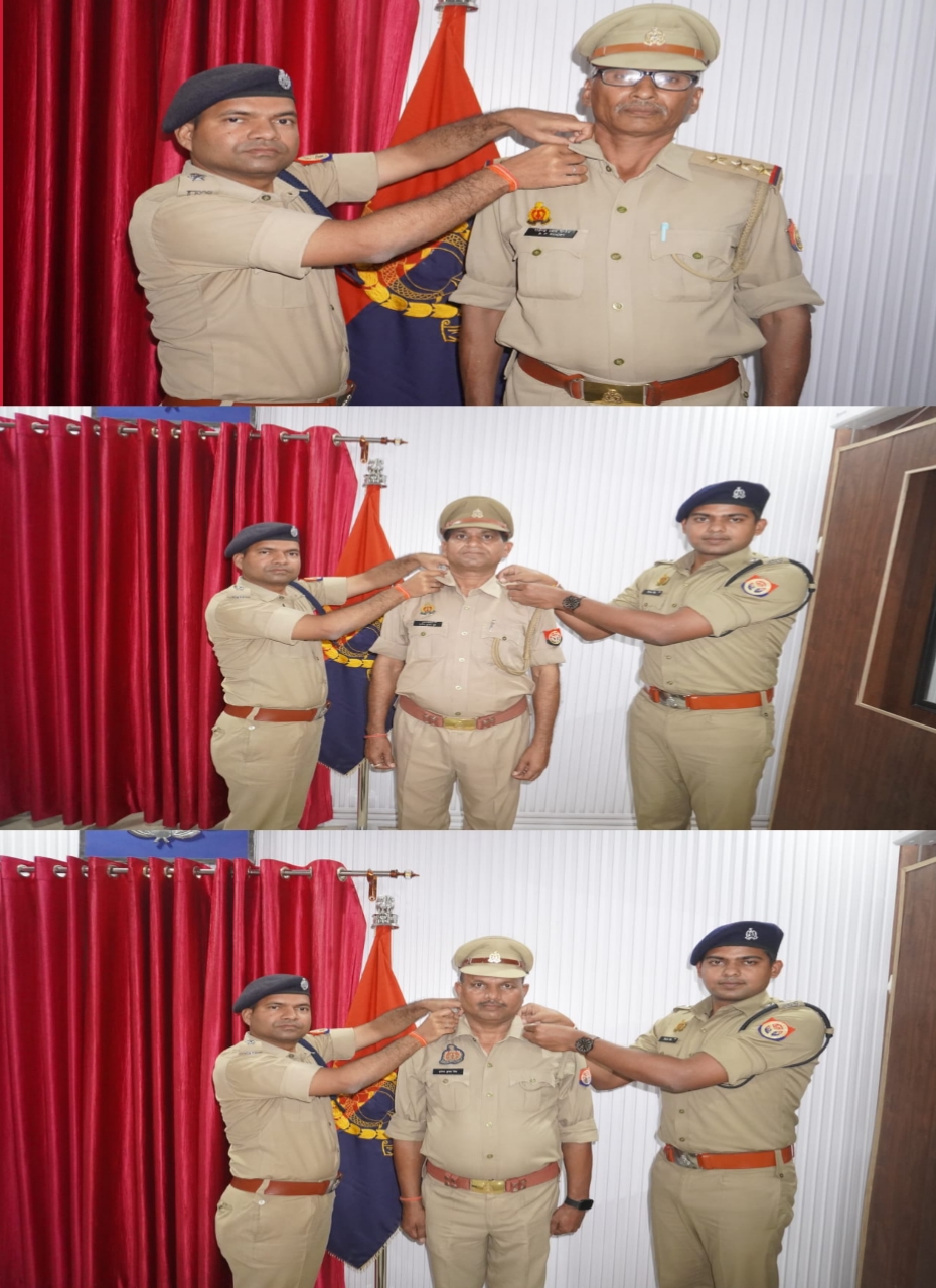 : पुलिस अधीक्षक विक्रांत वीर ने प्रमोशन पाने वाले उपनिरीक्षक के कन्धे पर स्टार लगाकर दी बधाई
