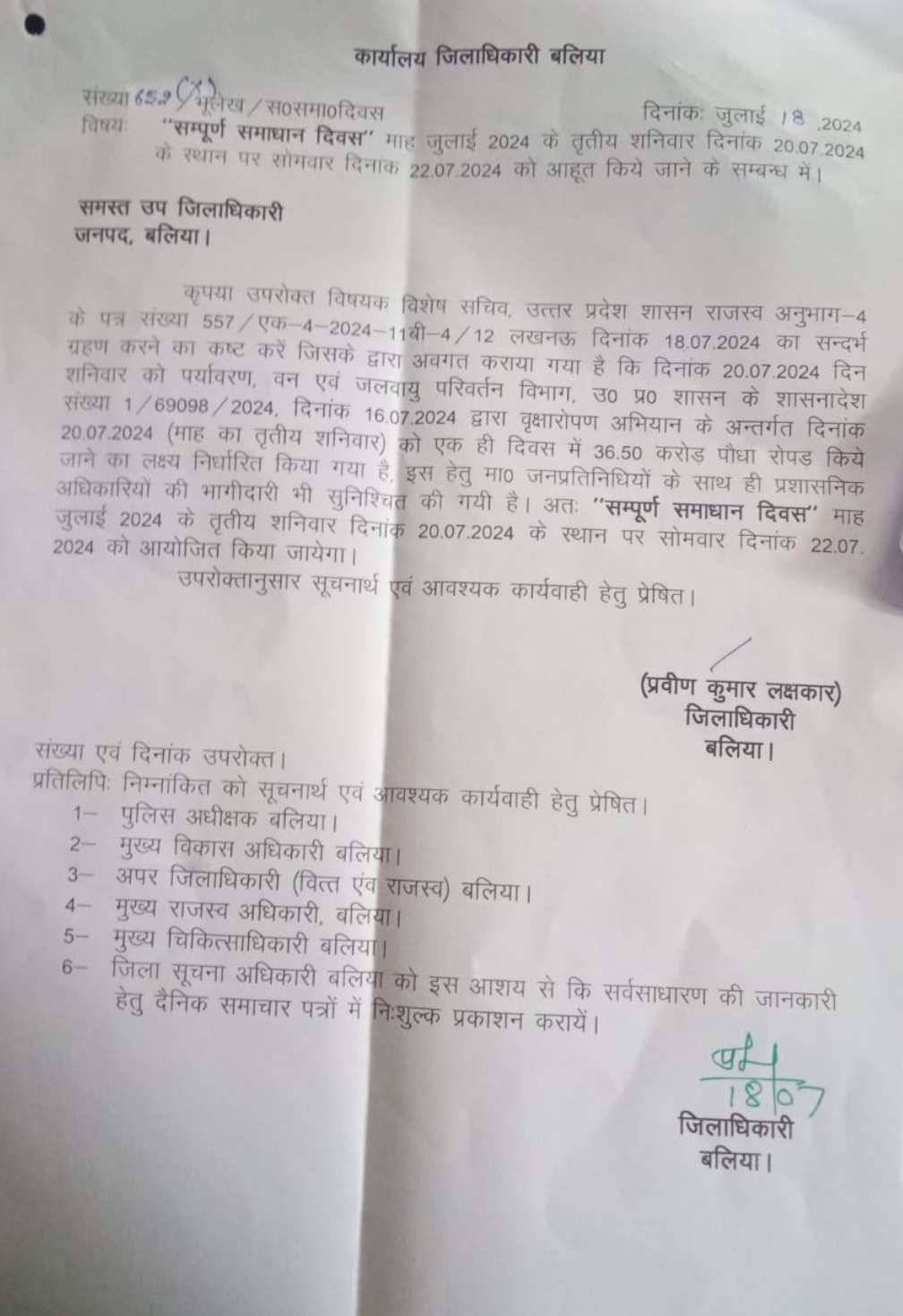 जनपद के सर्वोच्च अधिकारी द्वय ने जनशिकायतों को सुनकर शिकायतों का उचित,गुणवत्तापूर्ण निस्तारण के निर्देश दिए