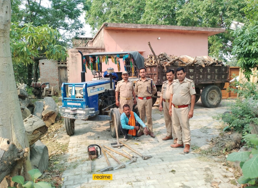 बलिया। विभाग को सूचना प्राप्त हुई कि सिकन्दरपुर तहसील अंतर्गत ग्राम सभा भरथावँ में हरे प्रतिबंधित प्रजाति के वृक्षों का अवैध कटान हो रहा है, प्राप्त सूचना के आधार पर श्री शिवम गुप्ता क्षेत्रीय वन अधिकारी सिकन्दरपुर के नेतृत्व में प्रभागीय प्रवर्तन दल व सिकन्दरपुर रेंज के कर्मचारियों के त्वरित कार्यवाही करते हुए ग्राम भरथावँ में अवैध कटान के विरुद्ध छापेमारी की गई ।मौके पर अवैध कटान करते हुए व अभिवहन करते अभियुक्तों तेज सिंह व श्याम बाबू ठेकेदार के साथ साथ ट्रैक्टर चालक नथुनी यादव को रंगेहाथ पकड़ा गया तथा एक ट्रैक्टर ट्रॉली , टांगा,फावडा व डीजल चलित आरी जब्त किया गया।कार्यवाही में श्री अंजनी सिंह उप क्षेत्रीय वन अधिकारी,श्री मुकेश राय वन दरोगा, श्री संजीव गुप्ता वन दरोगा, श्री दत्तात्रेय सिंह तथा श्री सूरज भारती माली आदि शामिल रहे।