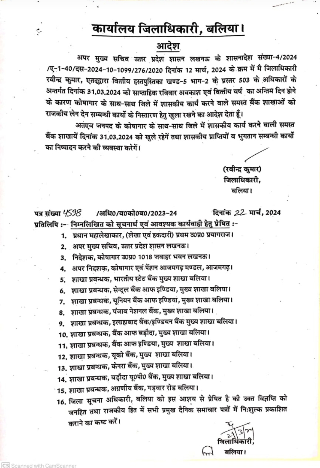 : 31 मार्च को भी खुली रहेगी ट्रेजरी और सभी बैंक शाखाएं