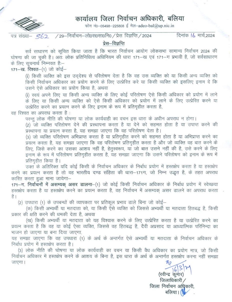 : जनपद में लोकप्रतिनिधित्व अधिनियम की धारा हुई प्रभावित