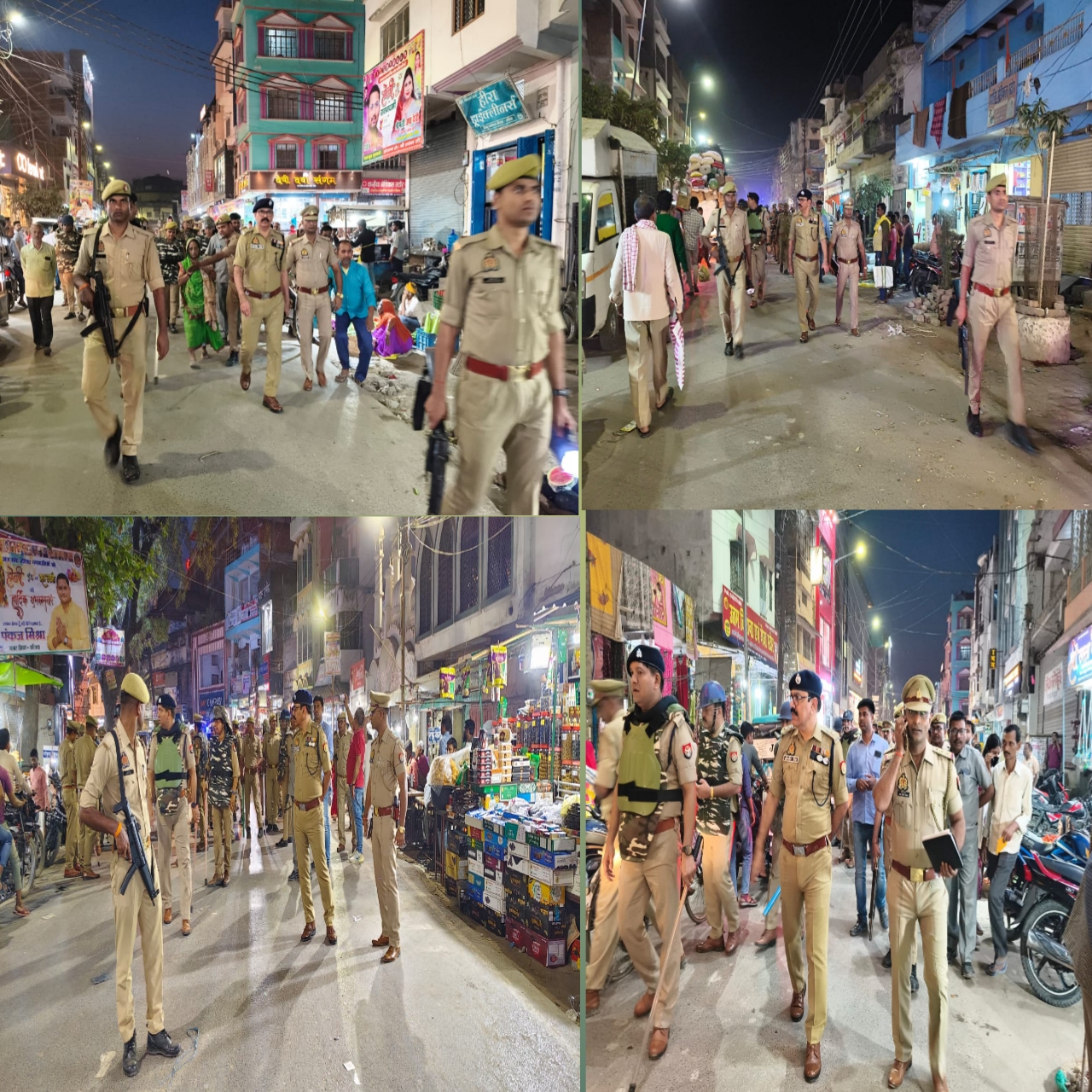 : आगामी त्यौहार व कानून व्यवस्था के दृष्टिगत पुलिस अधीक्षक बलिया द्वारा बड़ी संख्या में पुलिस बल के साथ किया गया पैदल गश्त