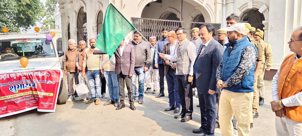 : खुर पकने-मूह पकने के रोग के नियंत्रण के लिए टीकाकरण अभियान का शुभारम्भ जिलाधिकारी ने हरी झण्डी दिखाकर किया