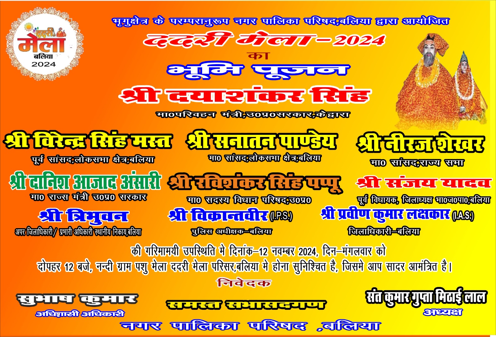 : ददरी मेला का भूमि-पूजन उ०प्र०शासन के परिवहन मंत्री दया शंकर सिंह 12 नवम्बर को करेंगे