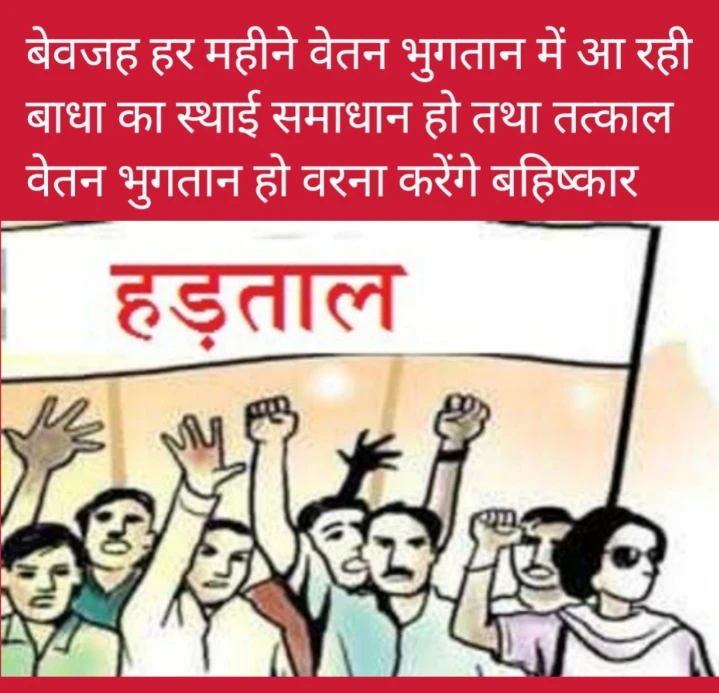 हर महीने वेतन भुगतान में आने वाली समस्या का स्थाई समाधान हो : माह जुलाई के वेतन का तत्काल भुगतान हो वरना करेंगे प्रशिक्षण व सूचना देने का बहिष्कार,जिलाधिकारी ने की पहल