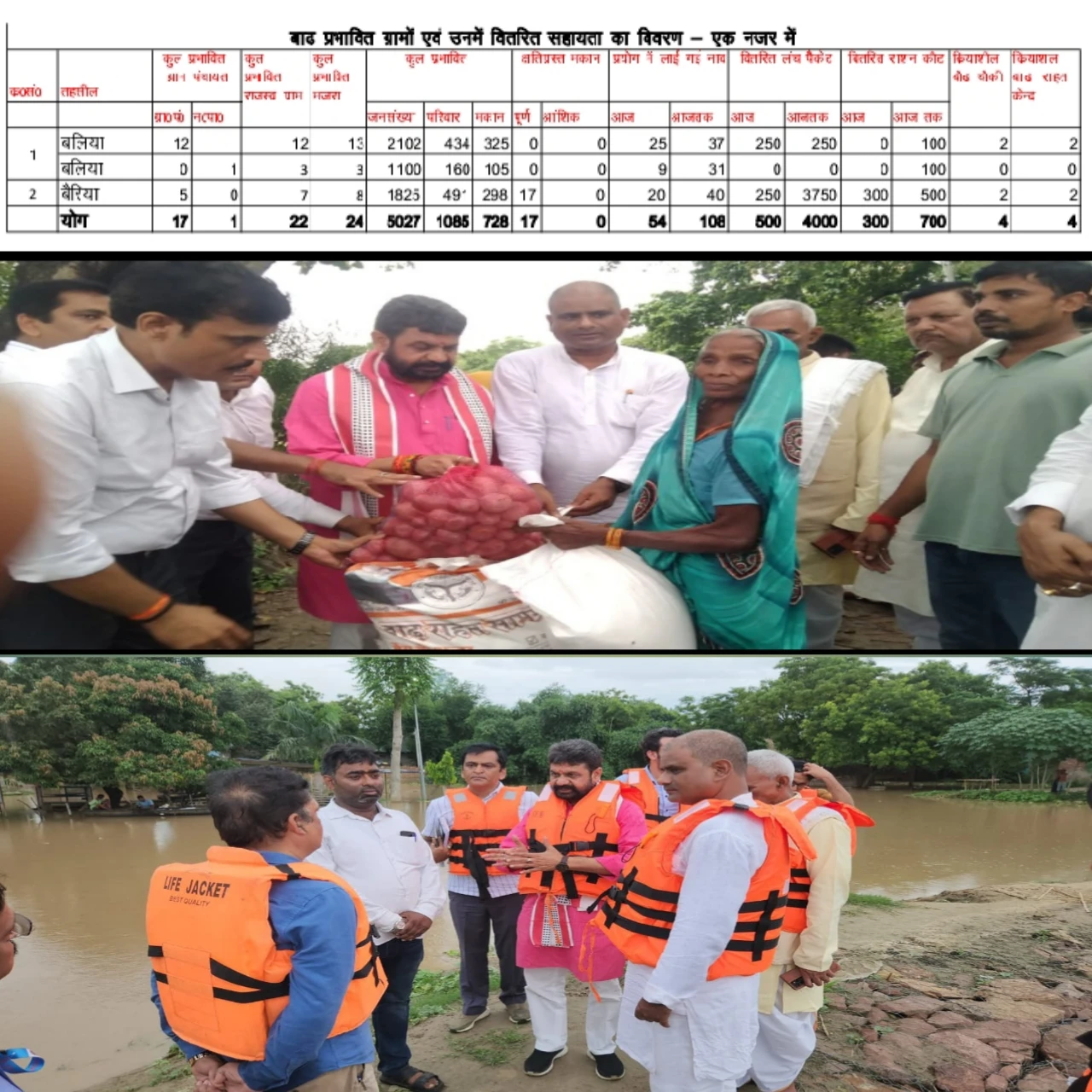 प्रभारी मंत्री ने डी०एम०के साथ किया बाढ़ व कटान क्षेत्रों का निरीक्षण : प्रभारी मंत्री दया शंकर मिश्र दयालु ने जिलाधिकारी मंगला प्रसाद के साथ किया बाढ़ राहत केन्द्र का फीता काट कर किया उदघाटन