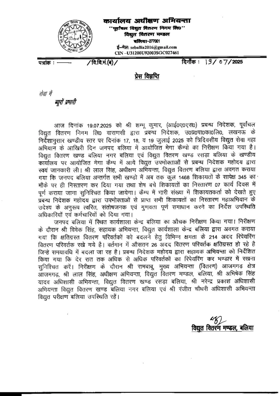 बिजली के मेगा कैम्प का किया गया निरीक्षक : 17,18 और 19 को लगने वाले कैम्प के तीसरे दिन शम्भू कुमार ने किया निरीक्षण