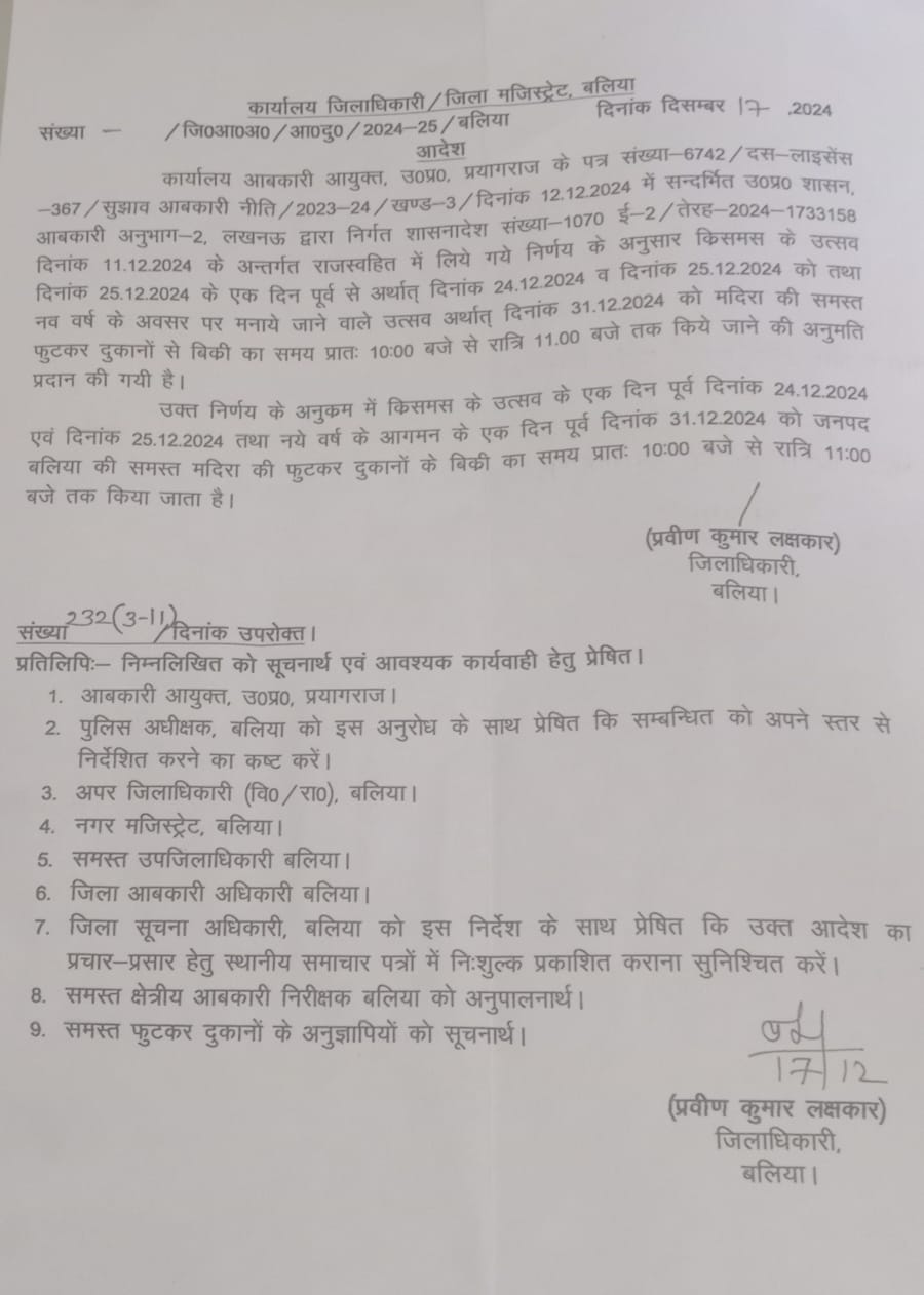 : मदिरा की दुकाने 10 बजे से रात्रि 11 बजे तक खुलेंगी और बिक्री होगी